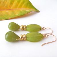 Green Olive Jade Drop Earrings - Modern Gemstone Jewelry
